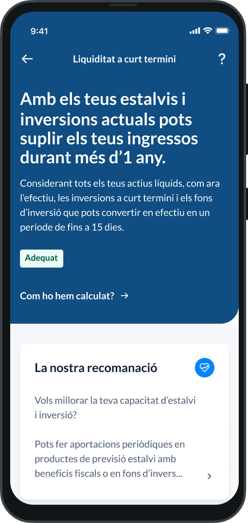 Rep recomanacions personalitzades que t'ajudaran a cuidar la teva salut financera i segueix l'evolució dels darrers mesos