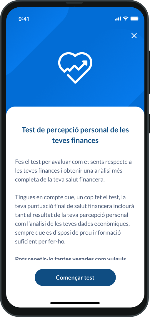 Realitza el test de percepció personal per poder obtenir una anàlisi completa de la teva salut financera