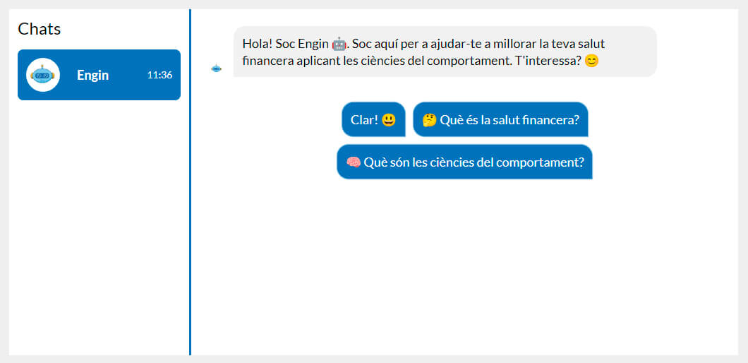Fidel al seu compromís amb la cura de la cultura i la salut financeres, la Fundació Caixa Enginyers, expressió de la vocació de Responsabilitat Social Corporativa del Grup Caixa Enginyers, ha llançat ENGIN: un bot de lliure accés que, basant-se en les ciències del comportament, contribueix a millorar la salut financera de les persones.
