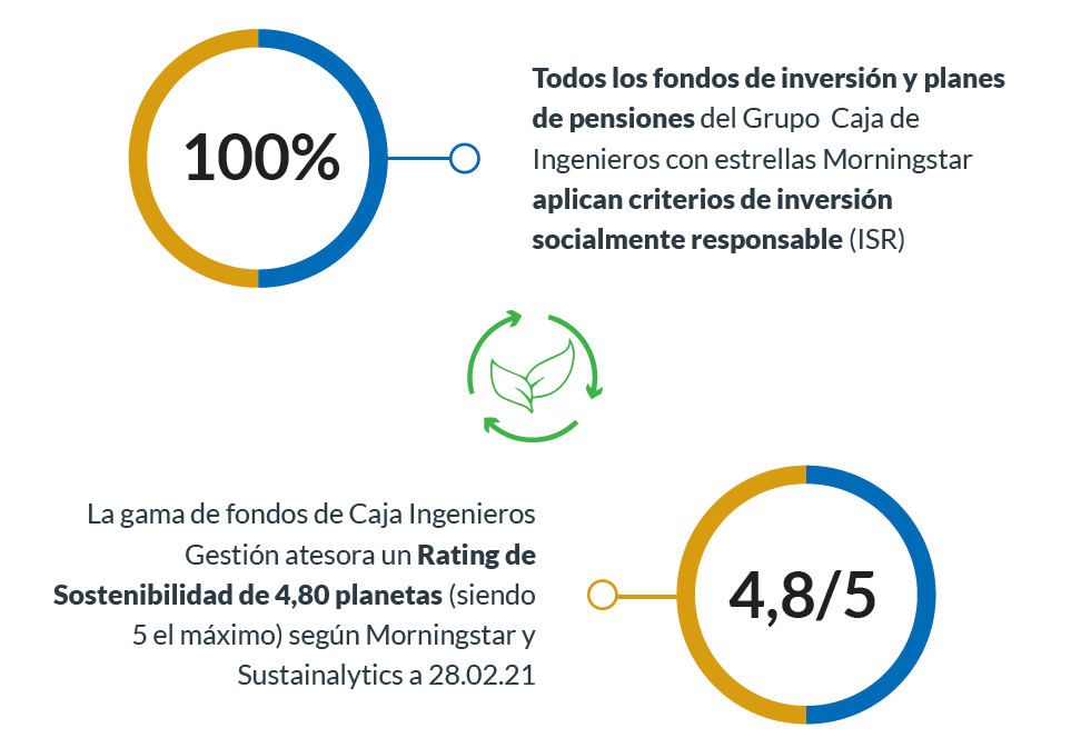 Caja Ingenieros Gestión se encuentra entre las 10 gestoras con mayor patrimonio de activos bajo gestión ISR (510 MM€) y duplica así el porcentaje de fondos ASG de hace tres años, que era del 27%. -